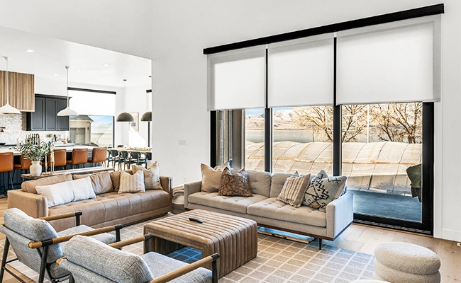 - Sliding Glass Doors: Bypass shutters, vertical shades, and drapery supply added efficiency and style.